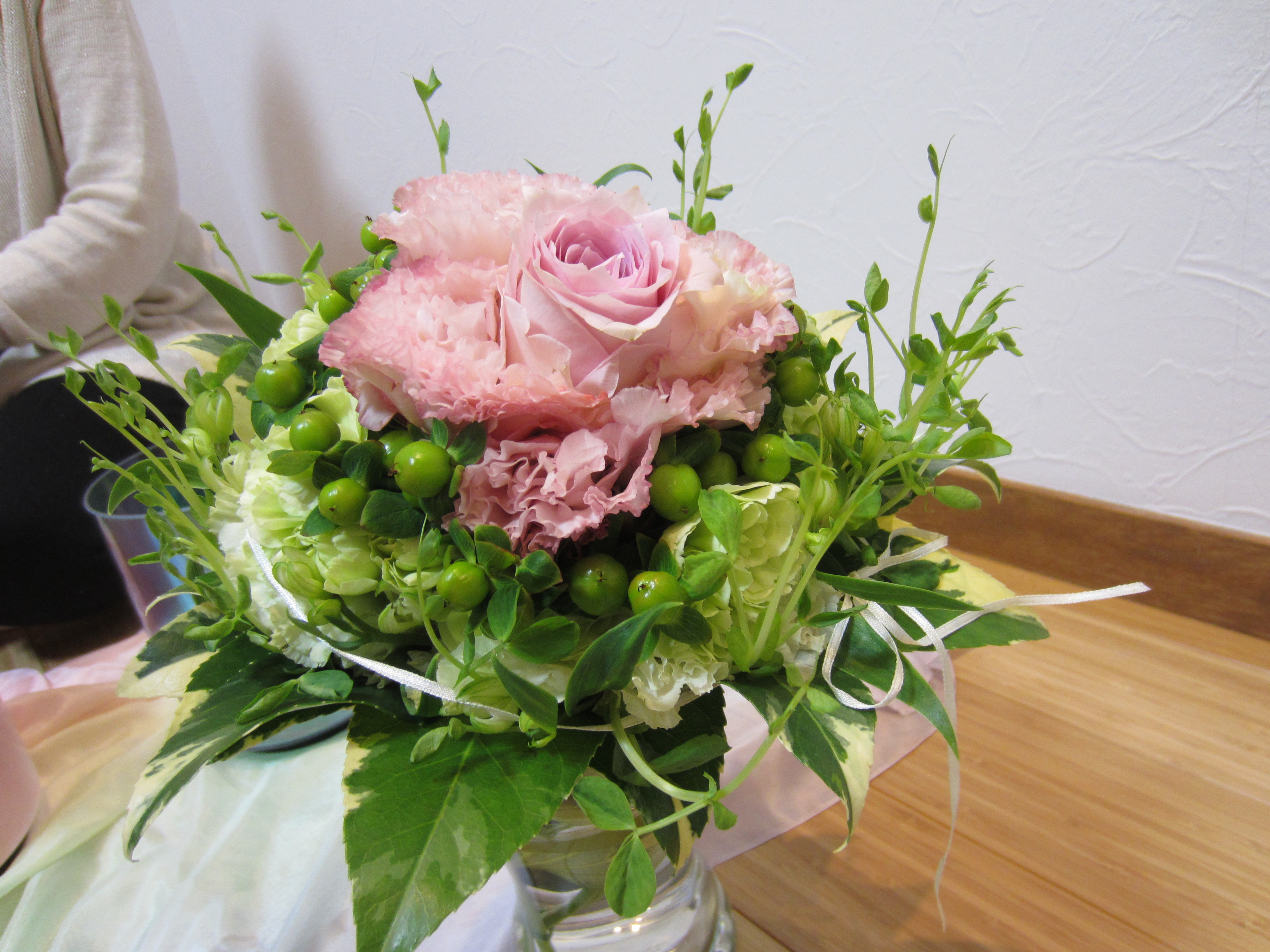 写真ではわかりにくいでしょうか? つるのようにぴっと伸びているのが見えると思いますが、他のお花と同じ高さだったのですが、瞑想会が終了した時点でこ~んなに伸びたんです。気持ちよかったんですね~、きっと。